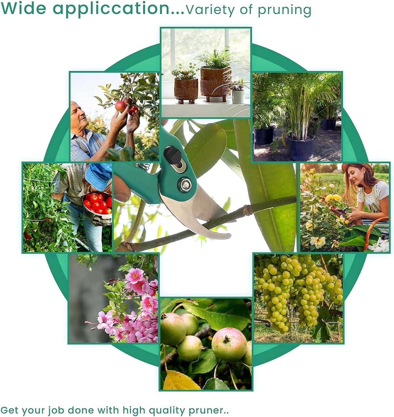 Product Name:�Assorted Hand Pruner CutterPackage Contains: It has 1 Pack of Assorted Hand Pruner CutterMaterial: Steel & MetalProduct Dimension: 17L x 7.5W cmCombo Pack: Pack of 1Weight: 169 gmsAdditional Information:�Stainless Steel Blades: Our garden pruner features high-quality stainless steel blades, making pruning effortless and providing an easy way to trim trees.Easy to Use: Effortlessly prune your favorite plants, flowers, bushes, and hedges. Our shears smoothly cut through stems, branches, roots, and vines, and also minimizes friction during cuts, prevents rust, and keeps the blade from gumming up with sap or debris.